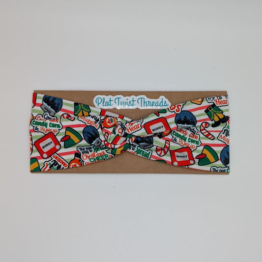 Adult Headband - Gold Snowflakes on Black and White Stripes