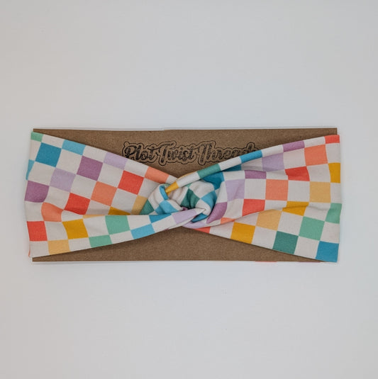 Adult Twist Headband - Checkered Heart Eye Smileys