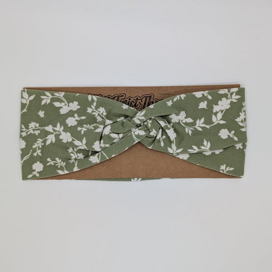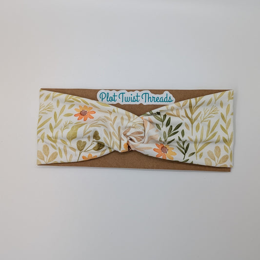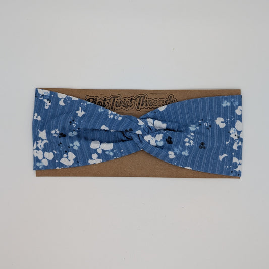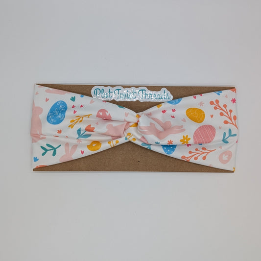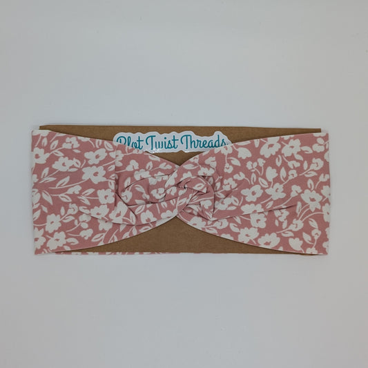 Adult Twist Headband - Rib Knit - White with Tiny Hearts