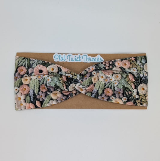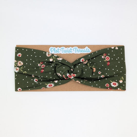 Adult Twist Headband - Rib Knit - Black with Tiny Hearts