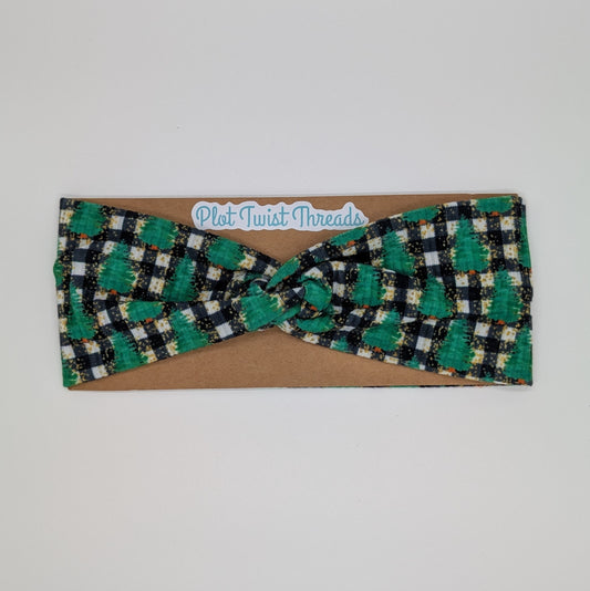 Adult Headband - Gold Snowflakes on Black and White Stripes
