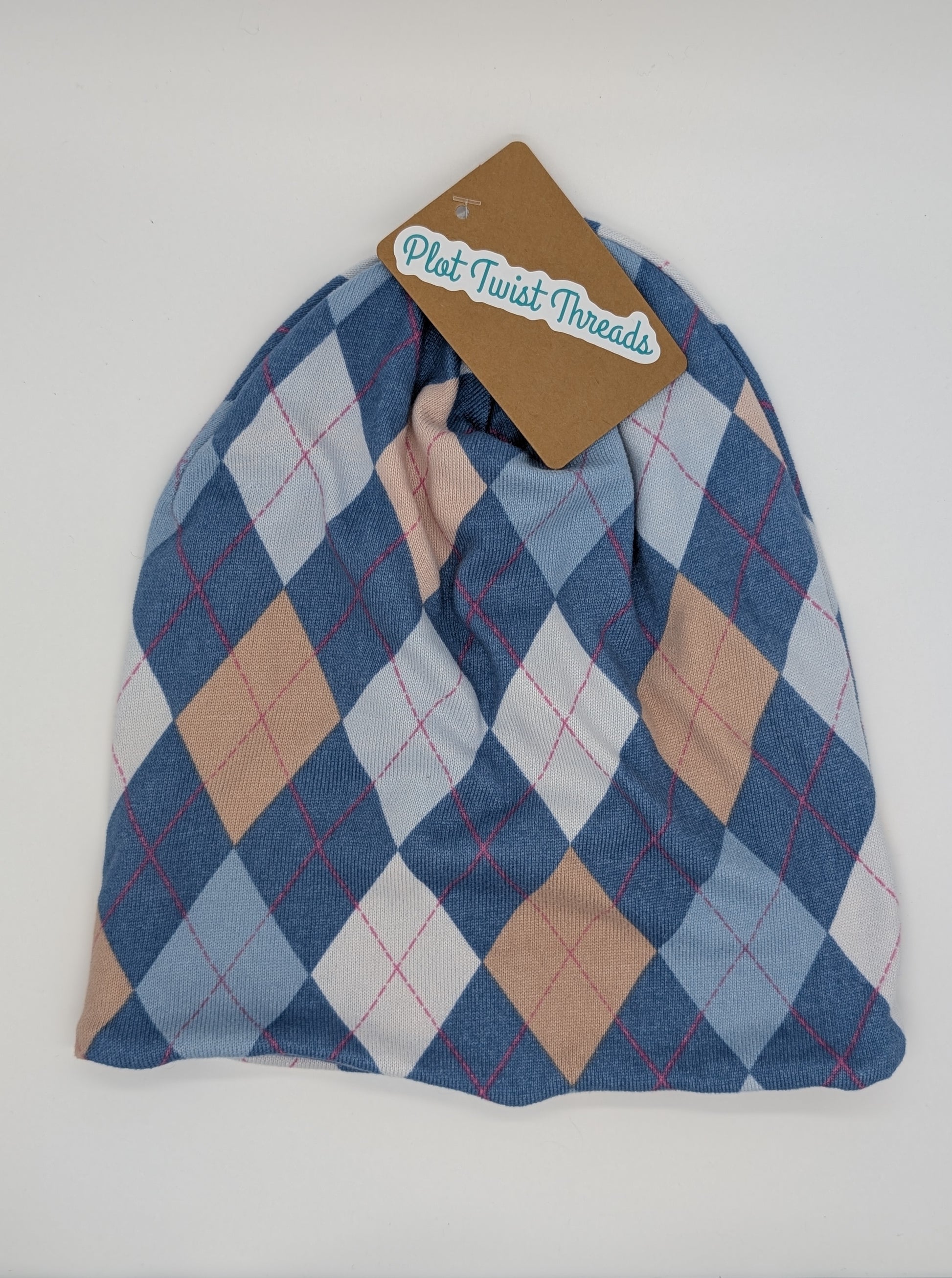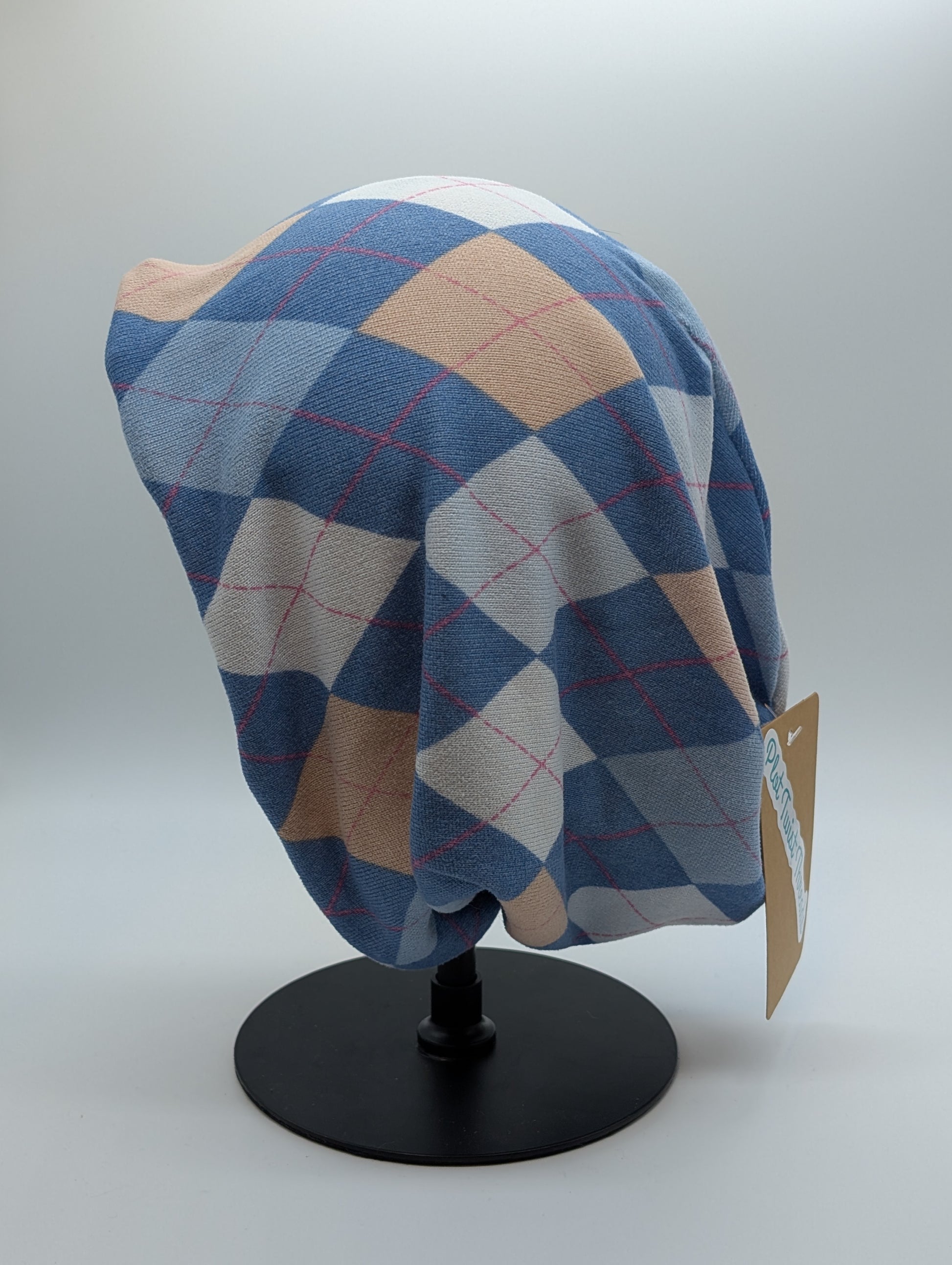 Beanie - Slouchy Beanie - Sweater Knit - Blue Argyle
