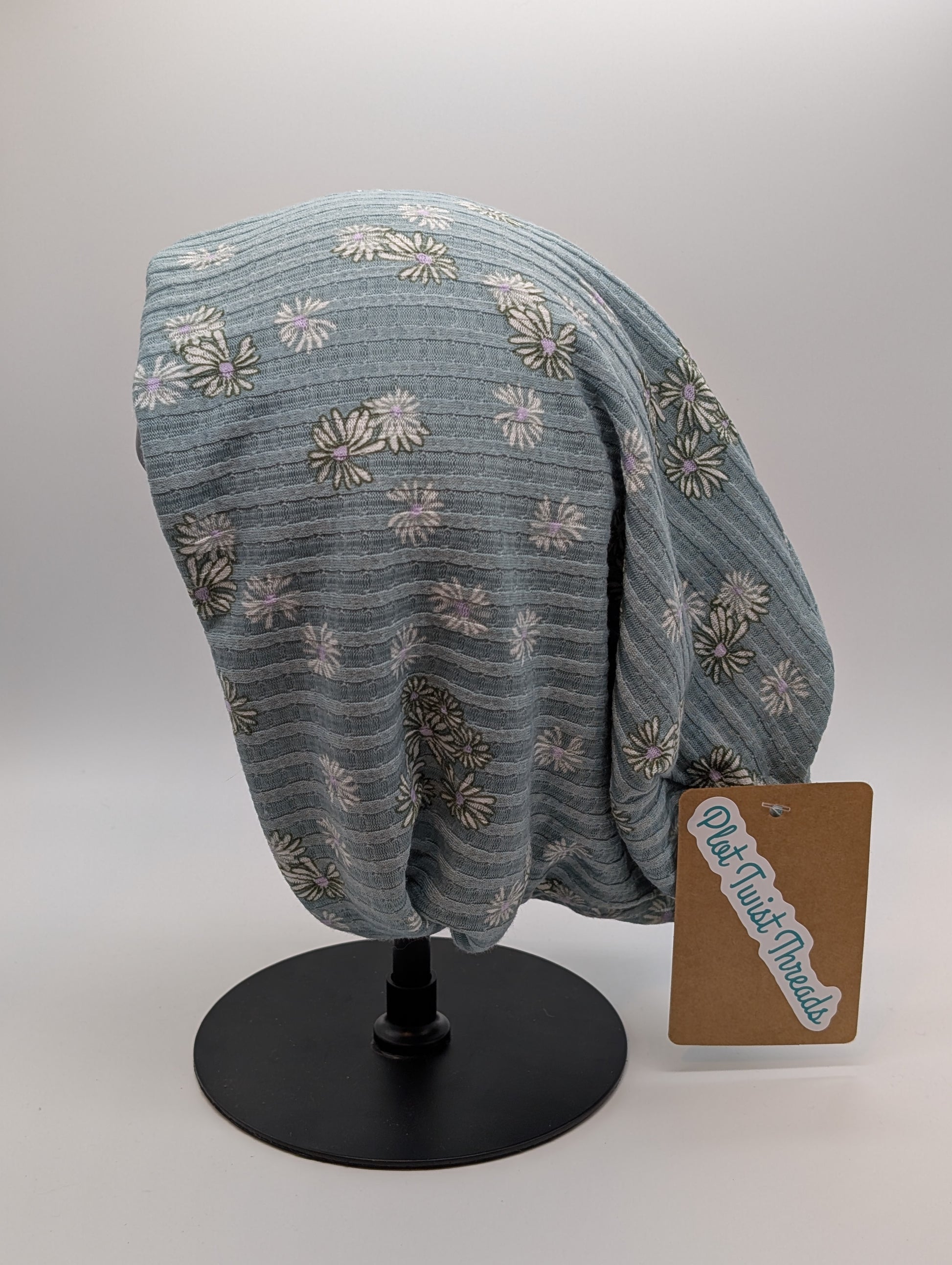 Beanie - Slouchy Beanie - Pointelle - Blue Daisies