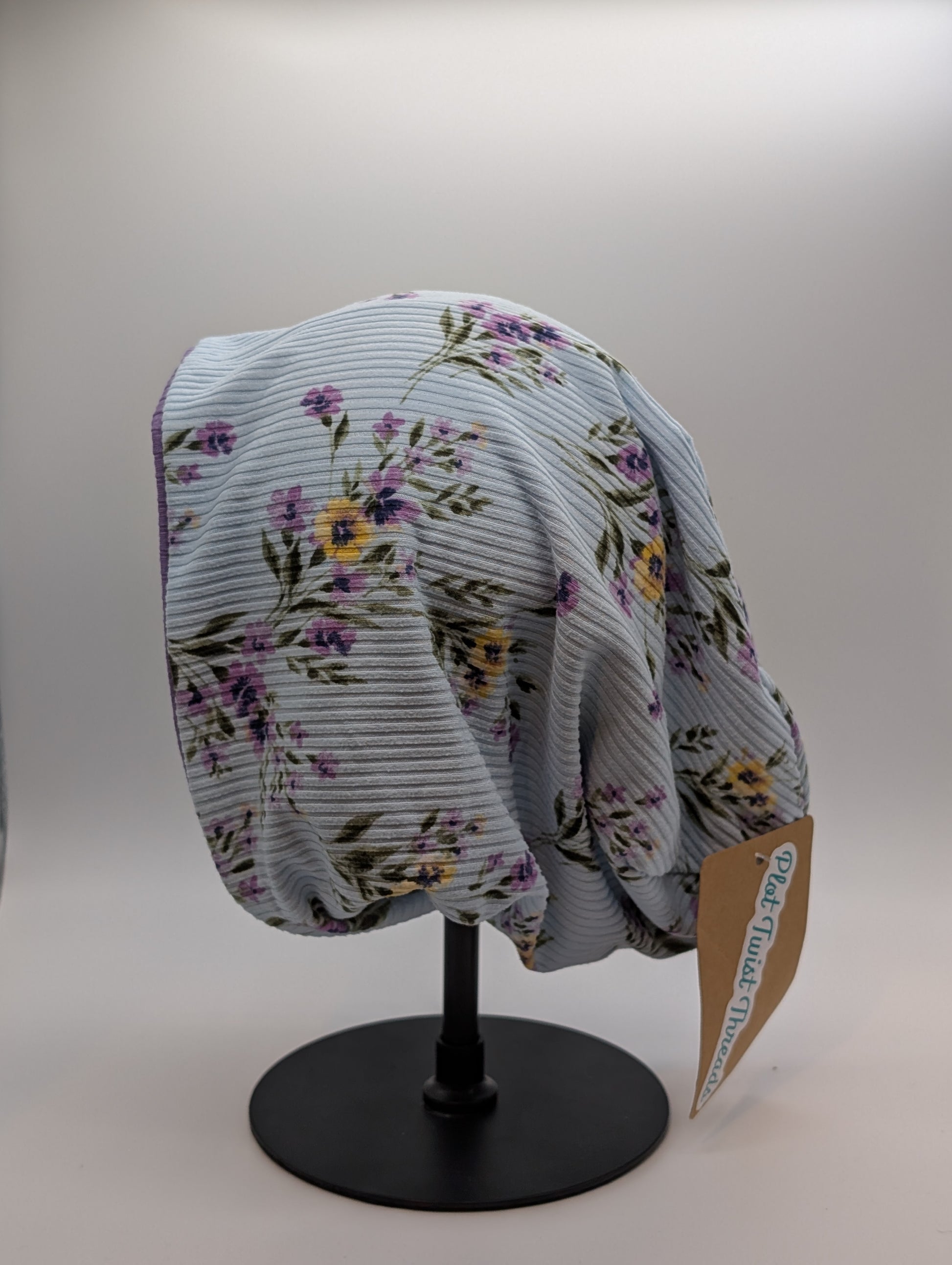 Beanie - Slouchy Beanie - Rib Knit - Blue Floral