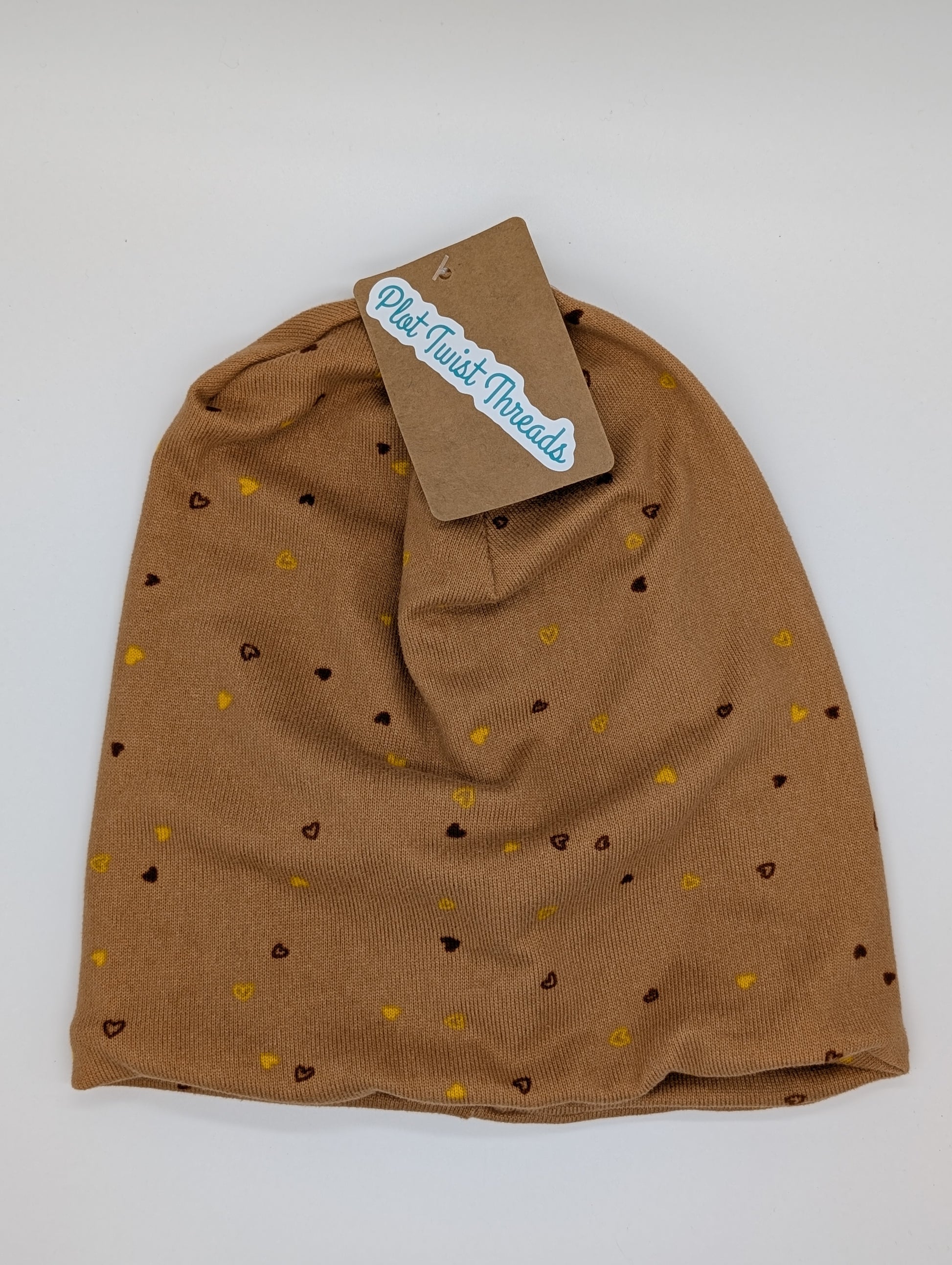 Beanie - Slouchy Beanie - Sweater Knit - Brown Hearts
