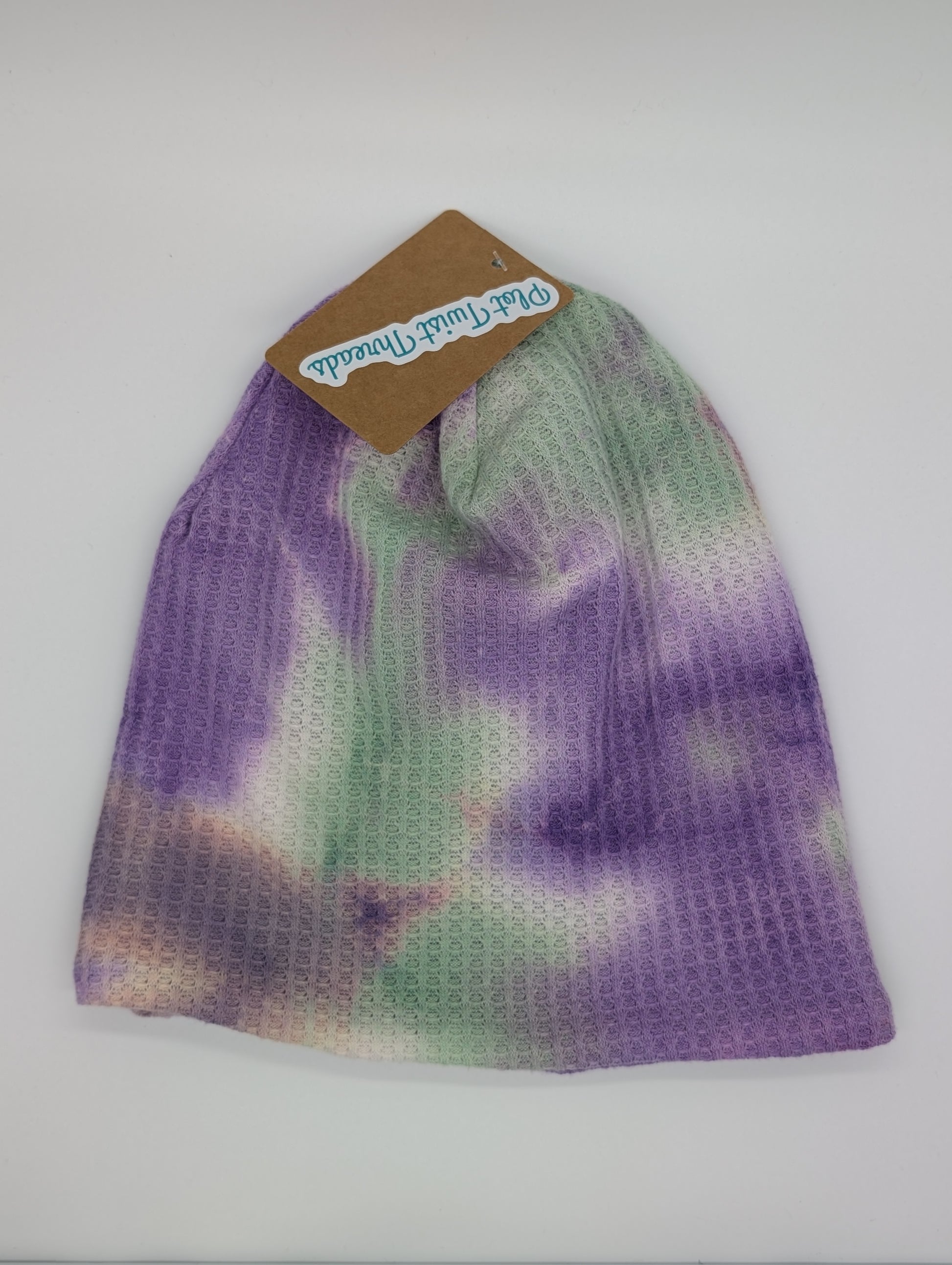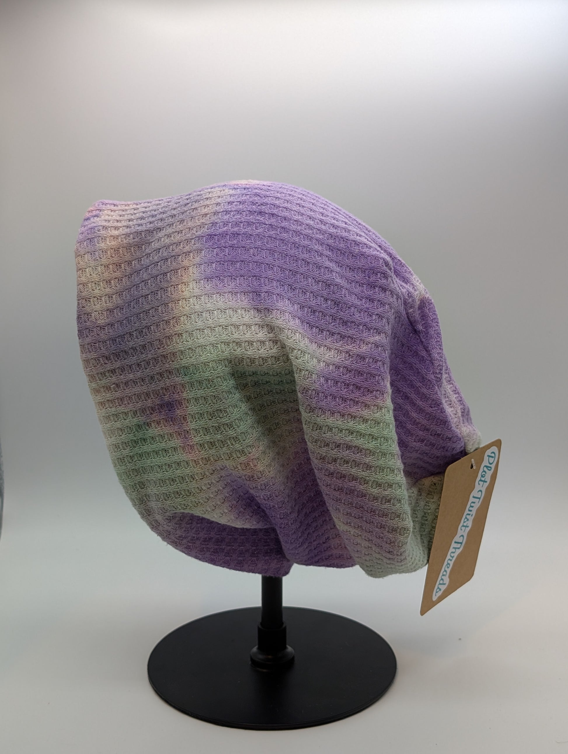 Beanie - Slouchy Beanie - Waffle Knit - Lilac/Mint Tie Dye