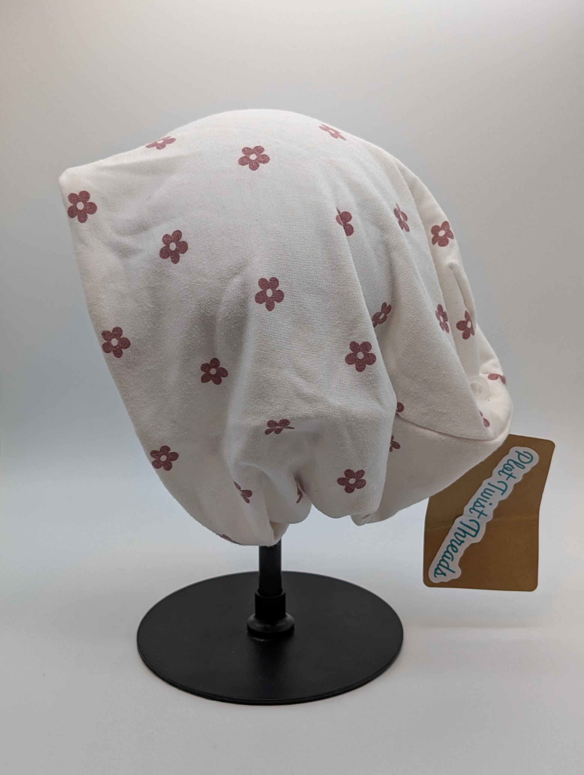 Beanie - Slouchy Beanie - White with Pink Flowers