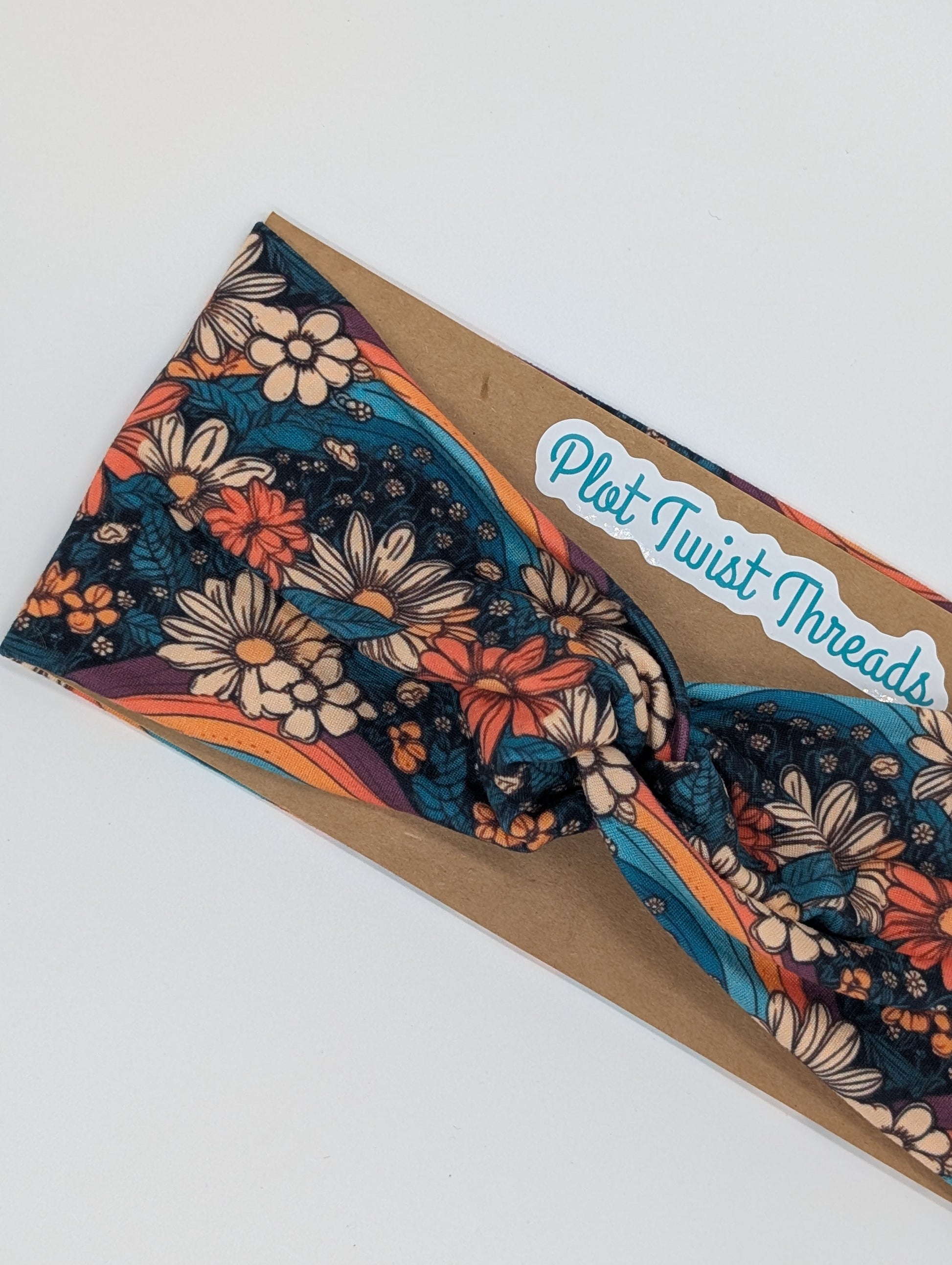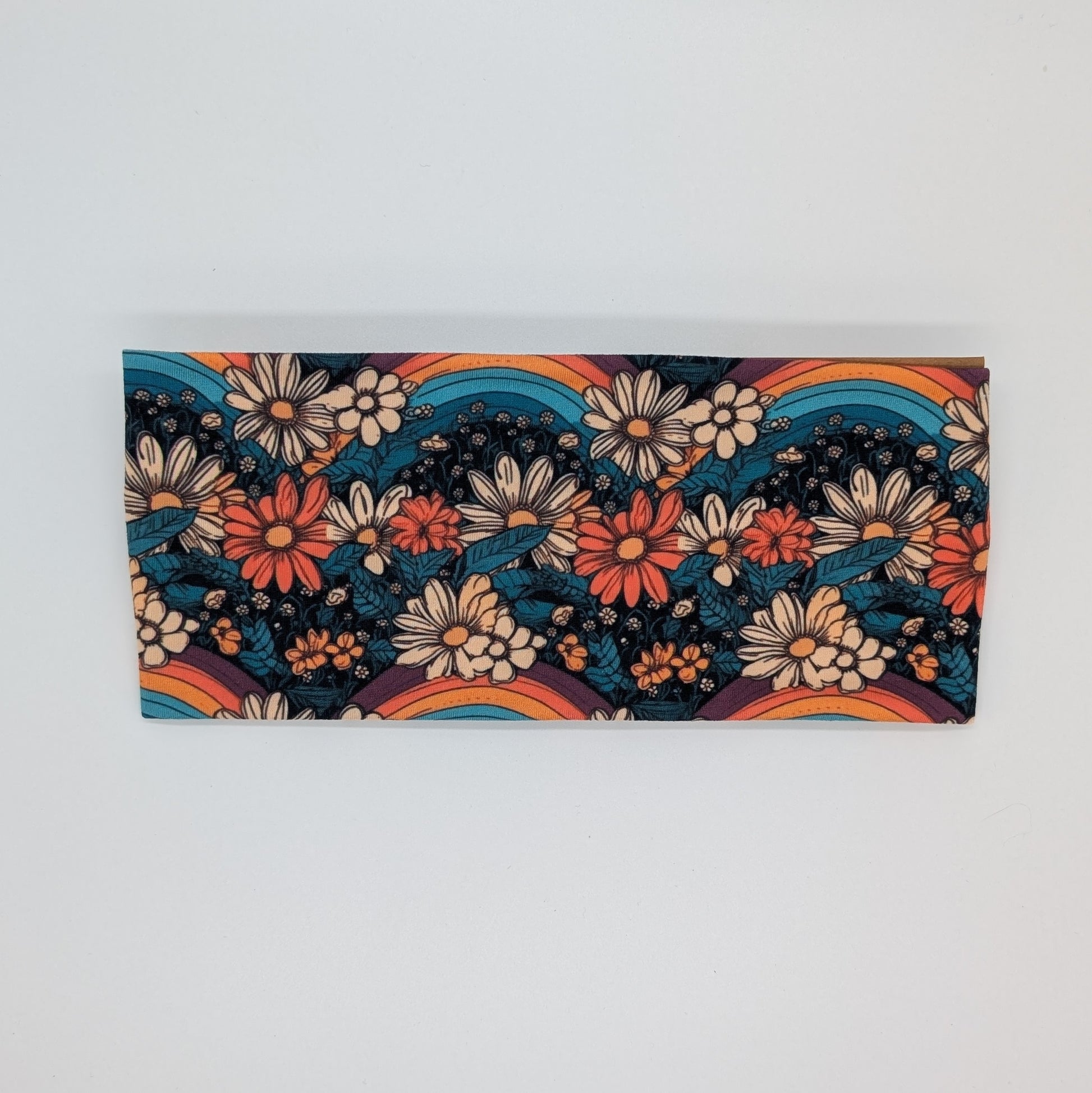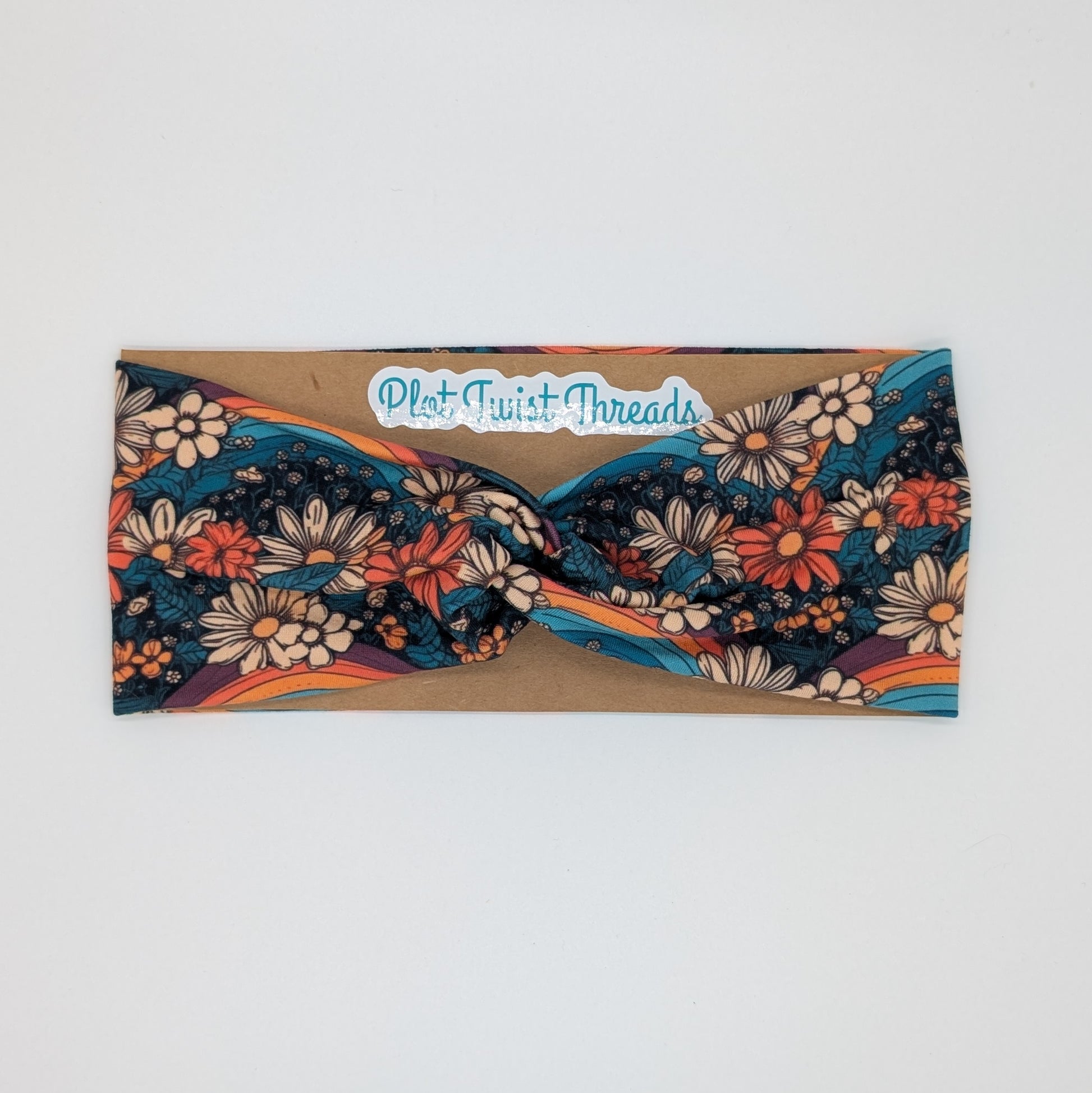 Adult Twist Headband - Teal Floral with Rainbows