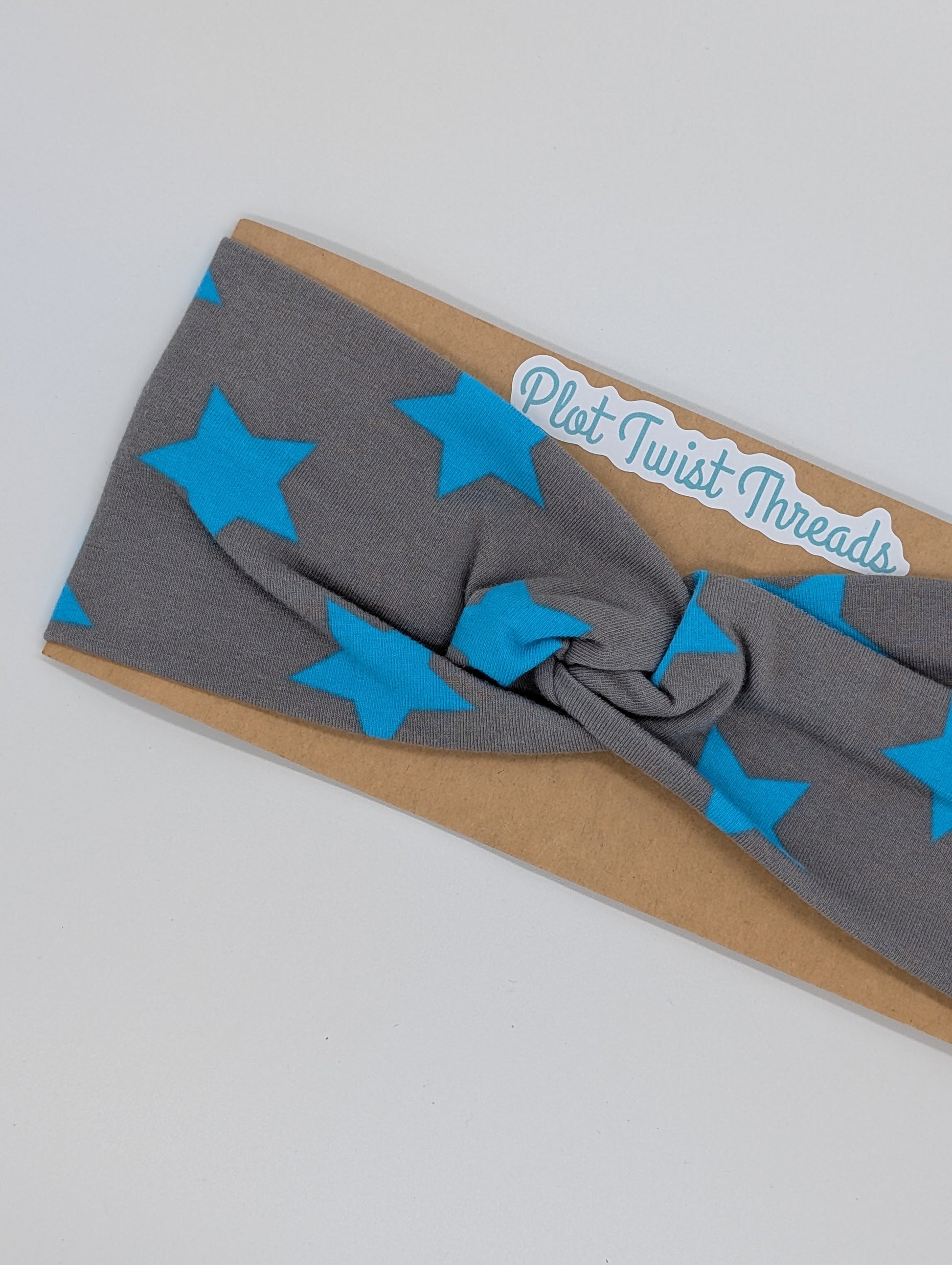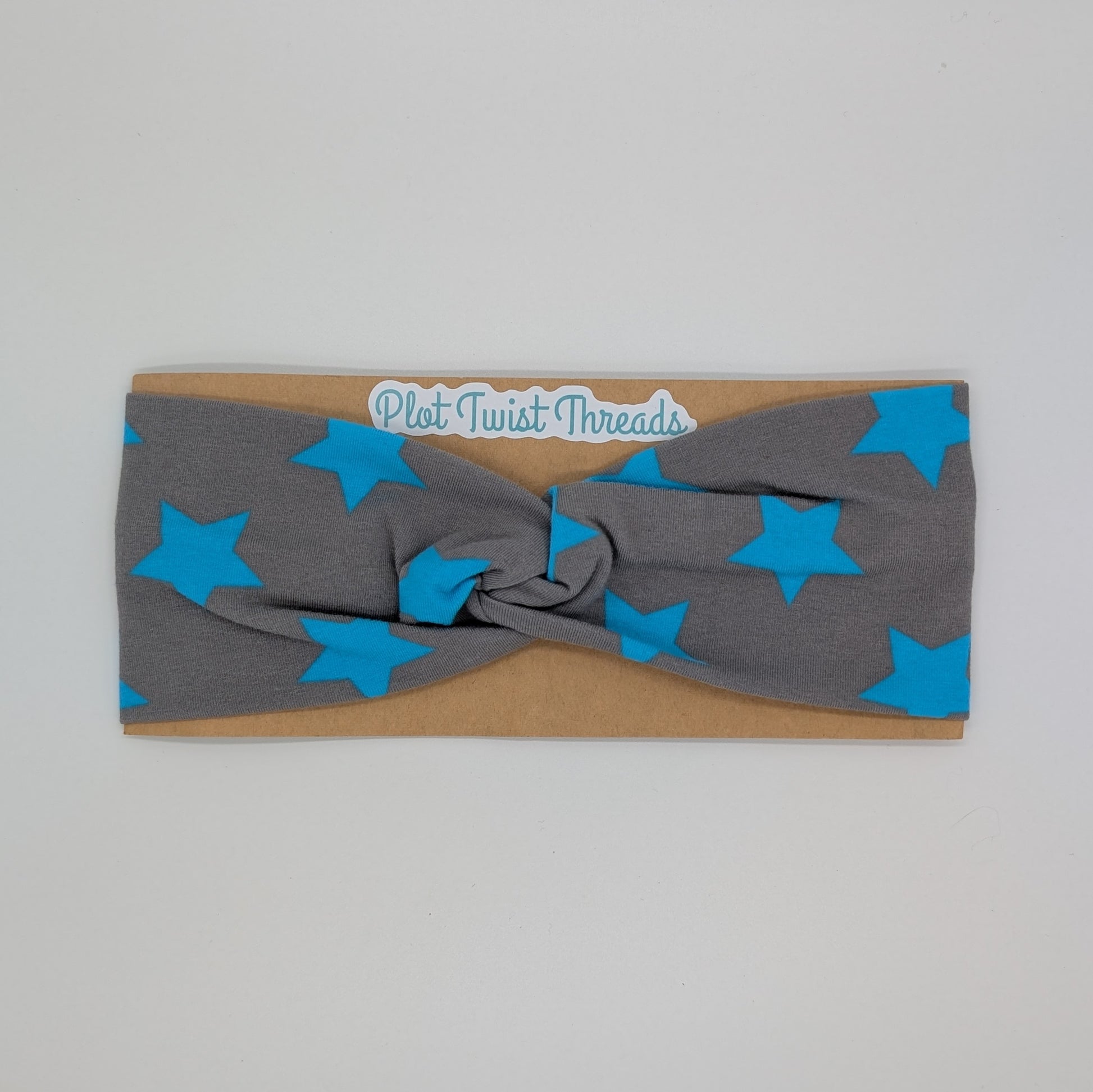 Adult Twist Headband - Blue Stars on Gray