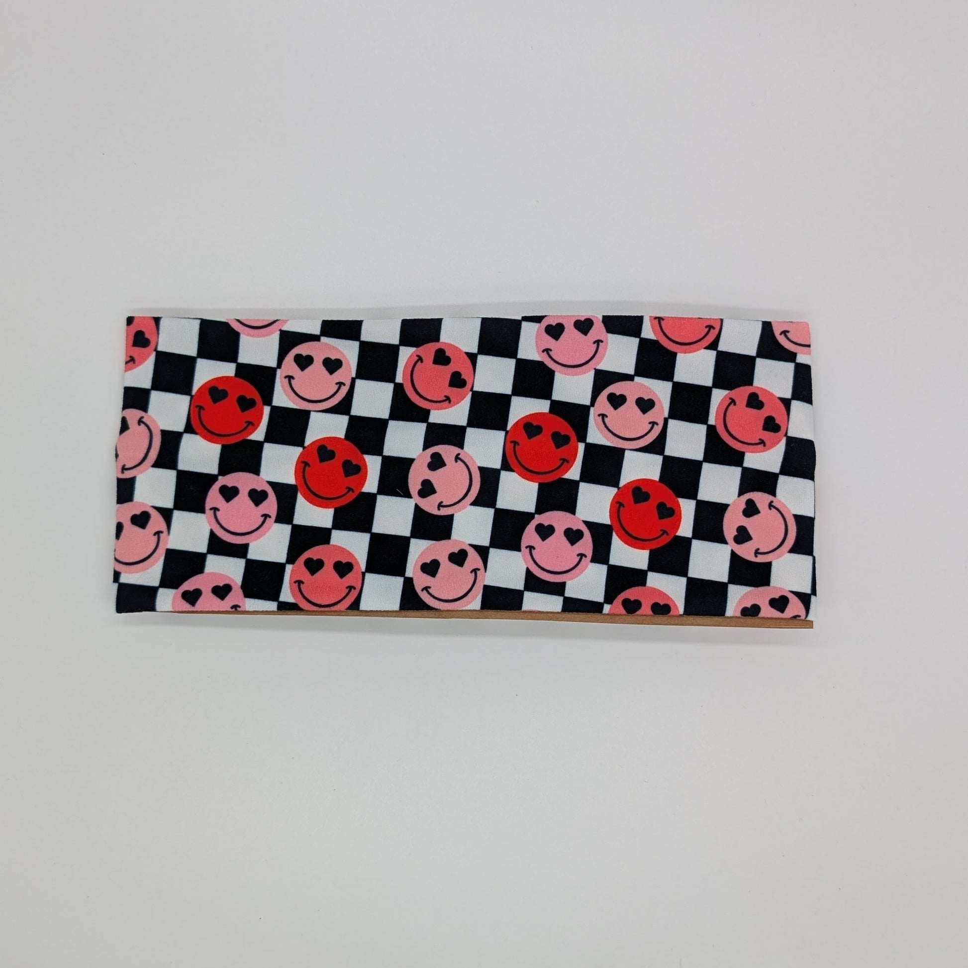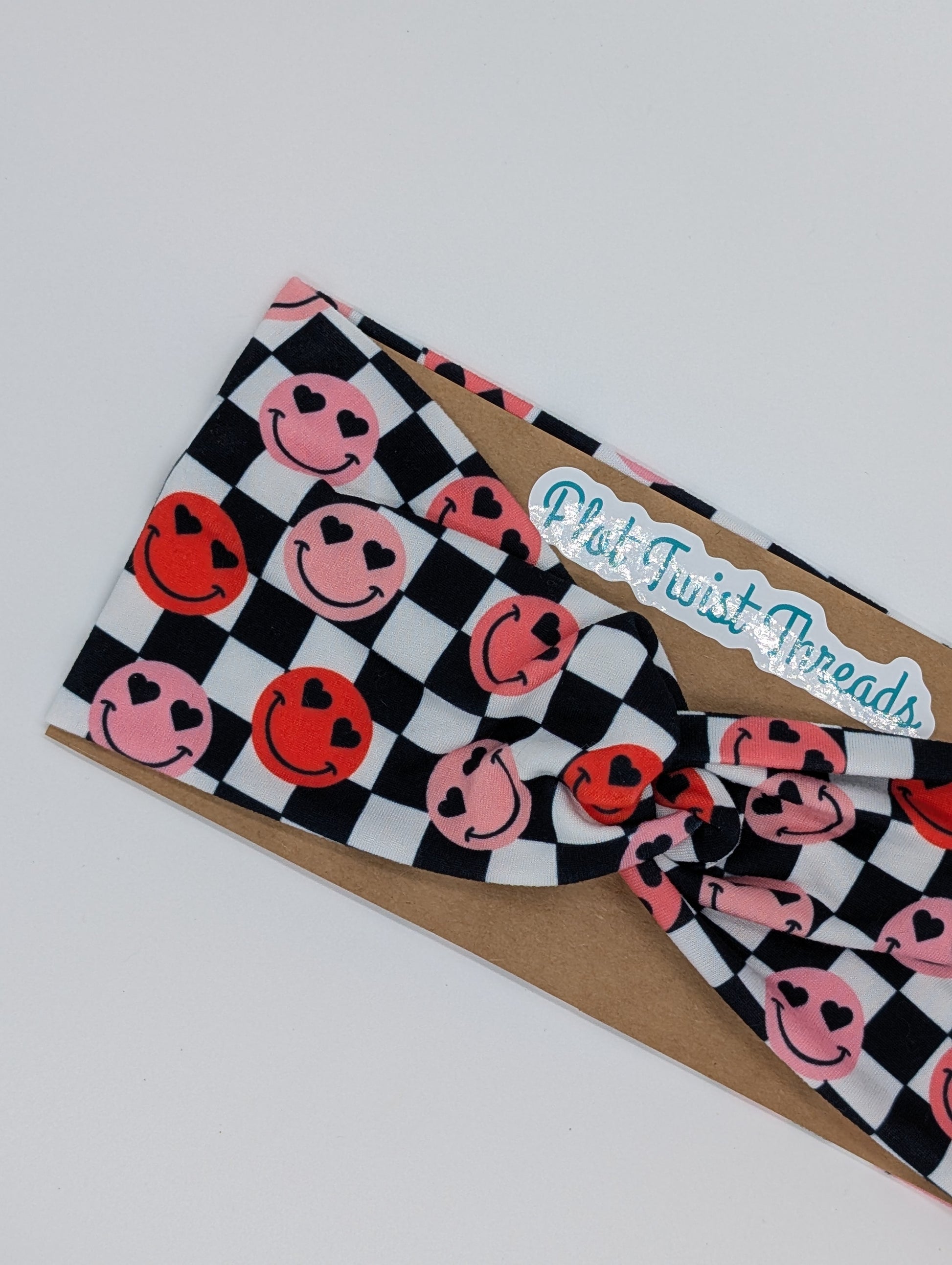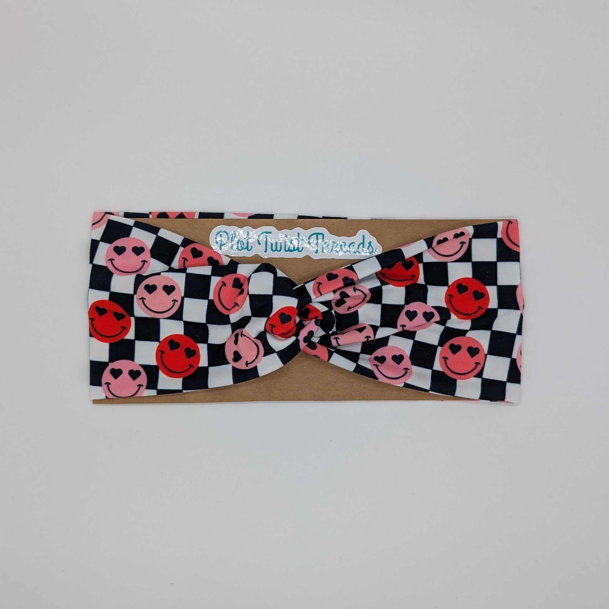 Adult Twist Headband - Checkered Heart Eye Smileys