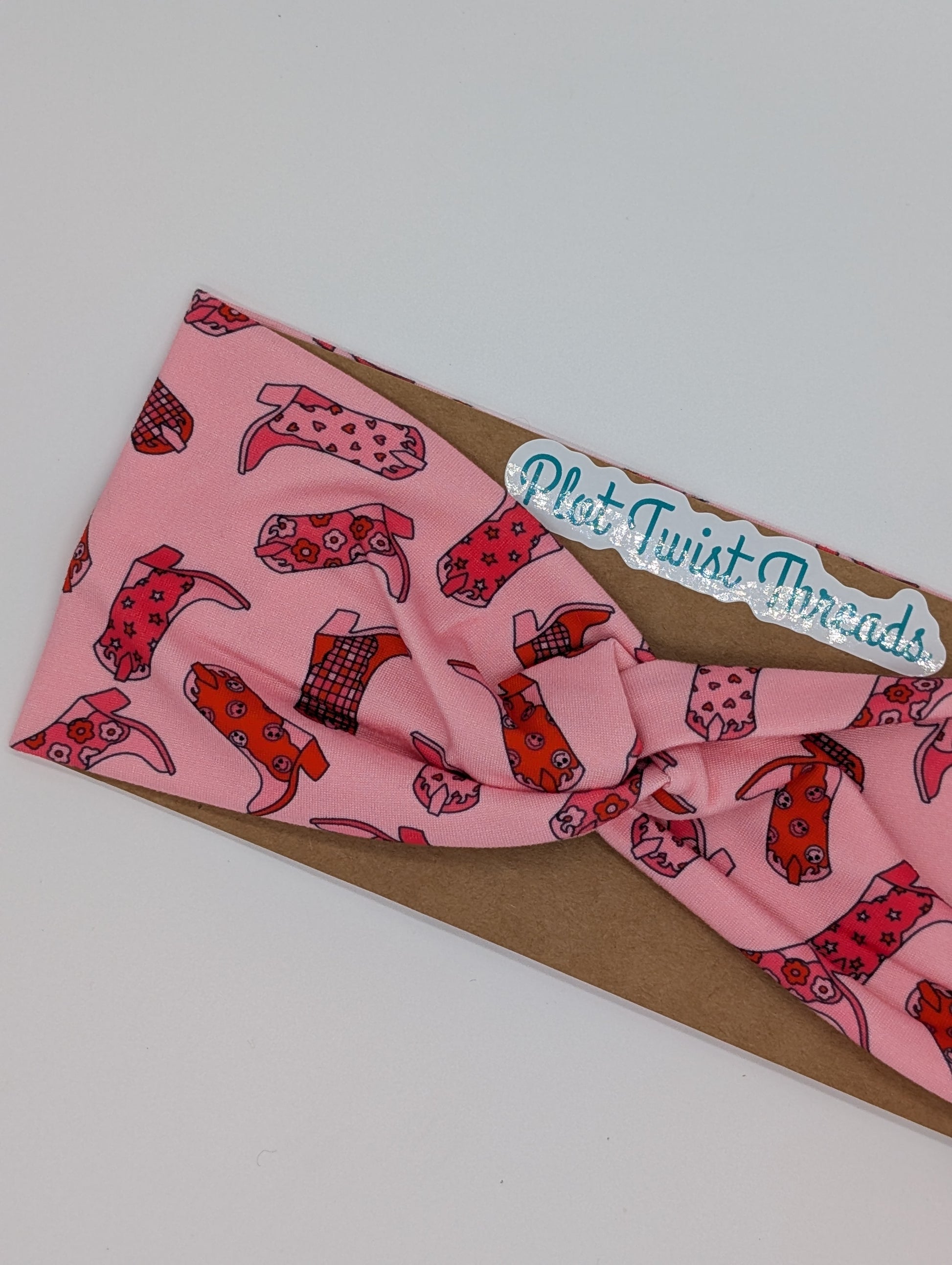 Adult Twist Headband - Pink Cowgirl Boots