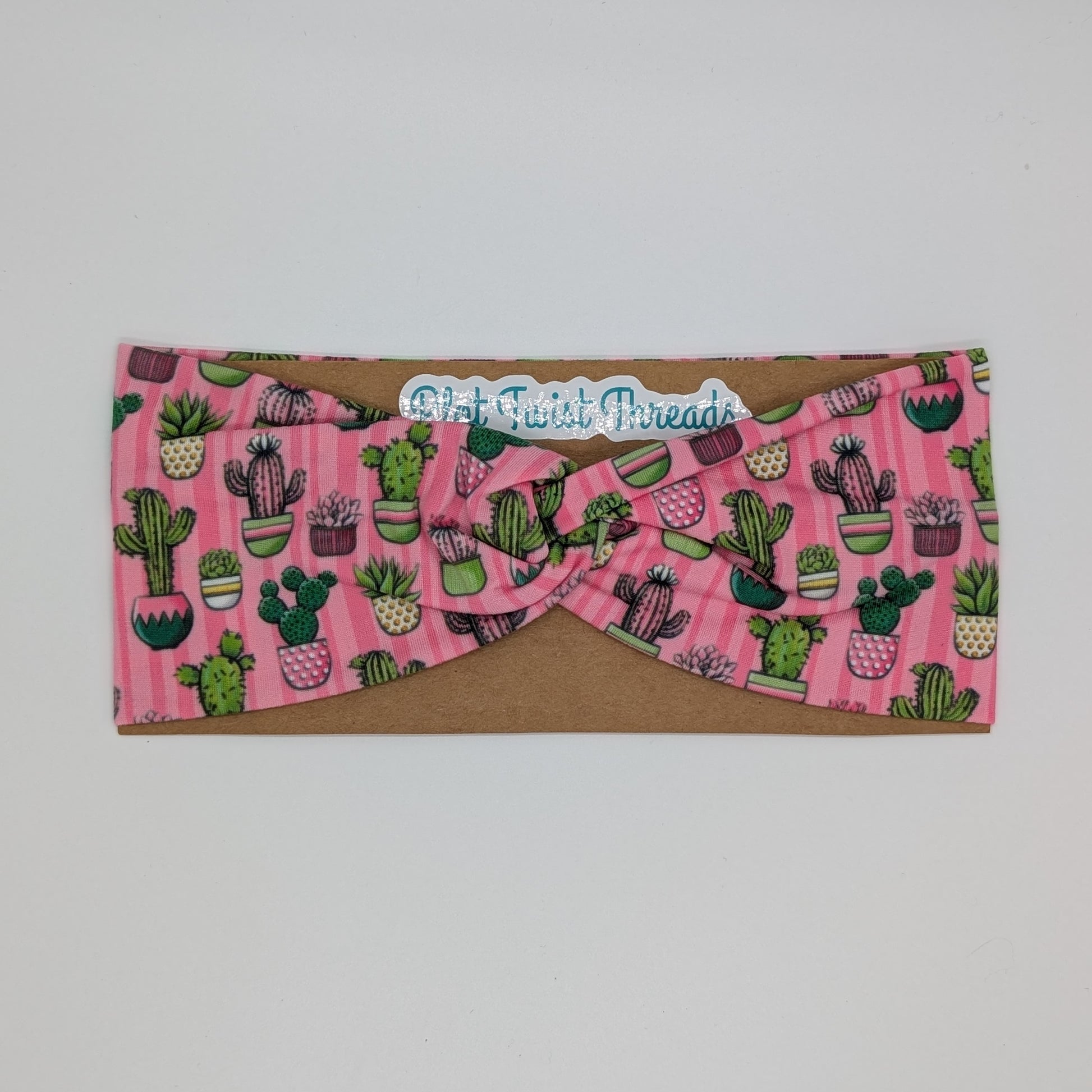 Adult Twist Headband - Cactus and Succulent Hot Pink