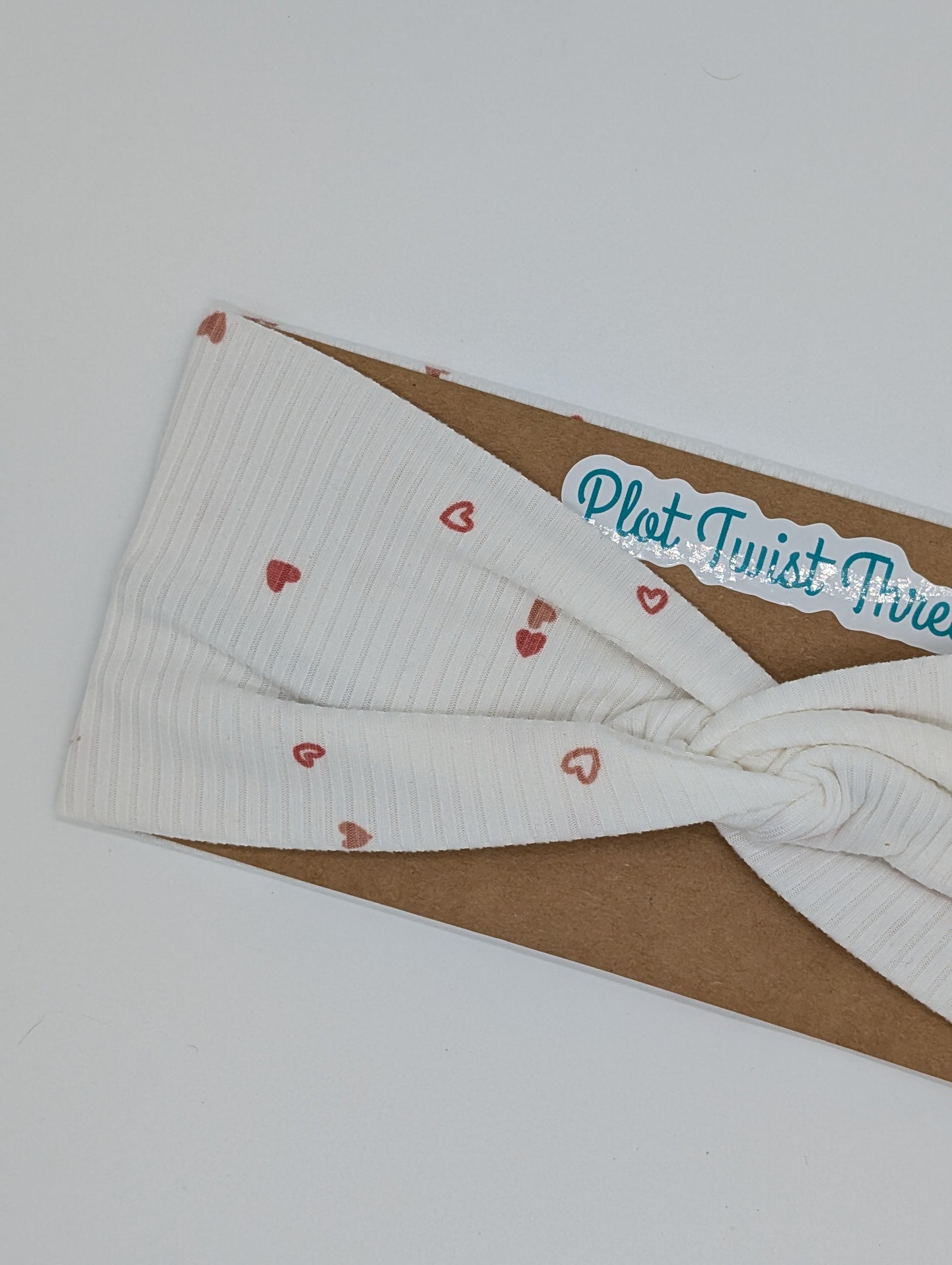 Adult Twist Headband - Rib Knit - White with Tiny Hearts