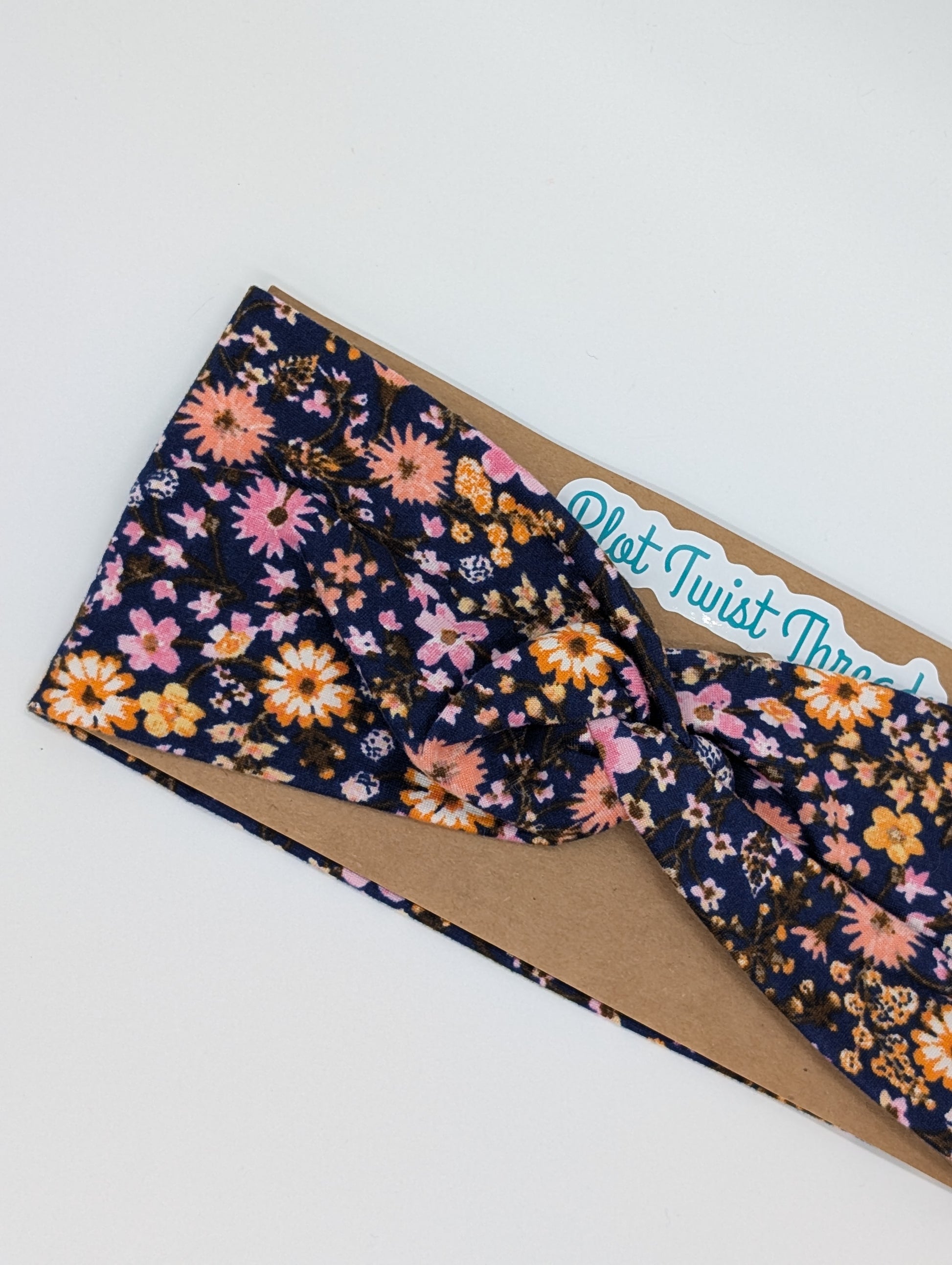 Adult Twist Headband - Pink/Orange Floral on Navy