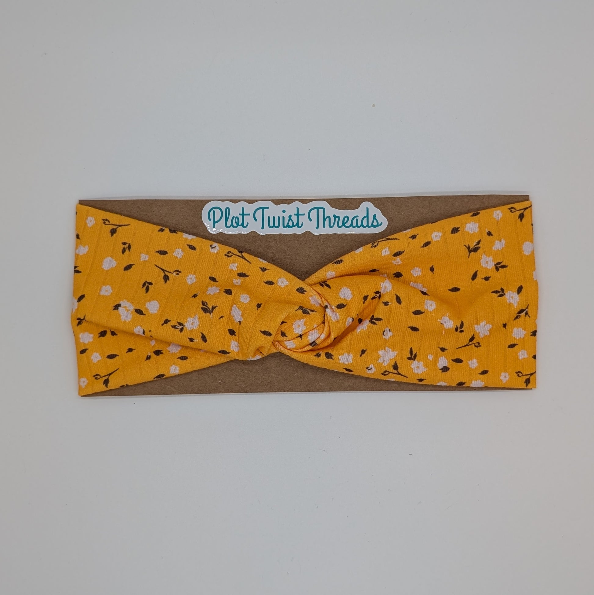 Adult Twist Headband - Rib Knit - Yellow Floral