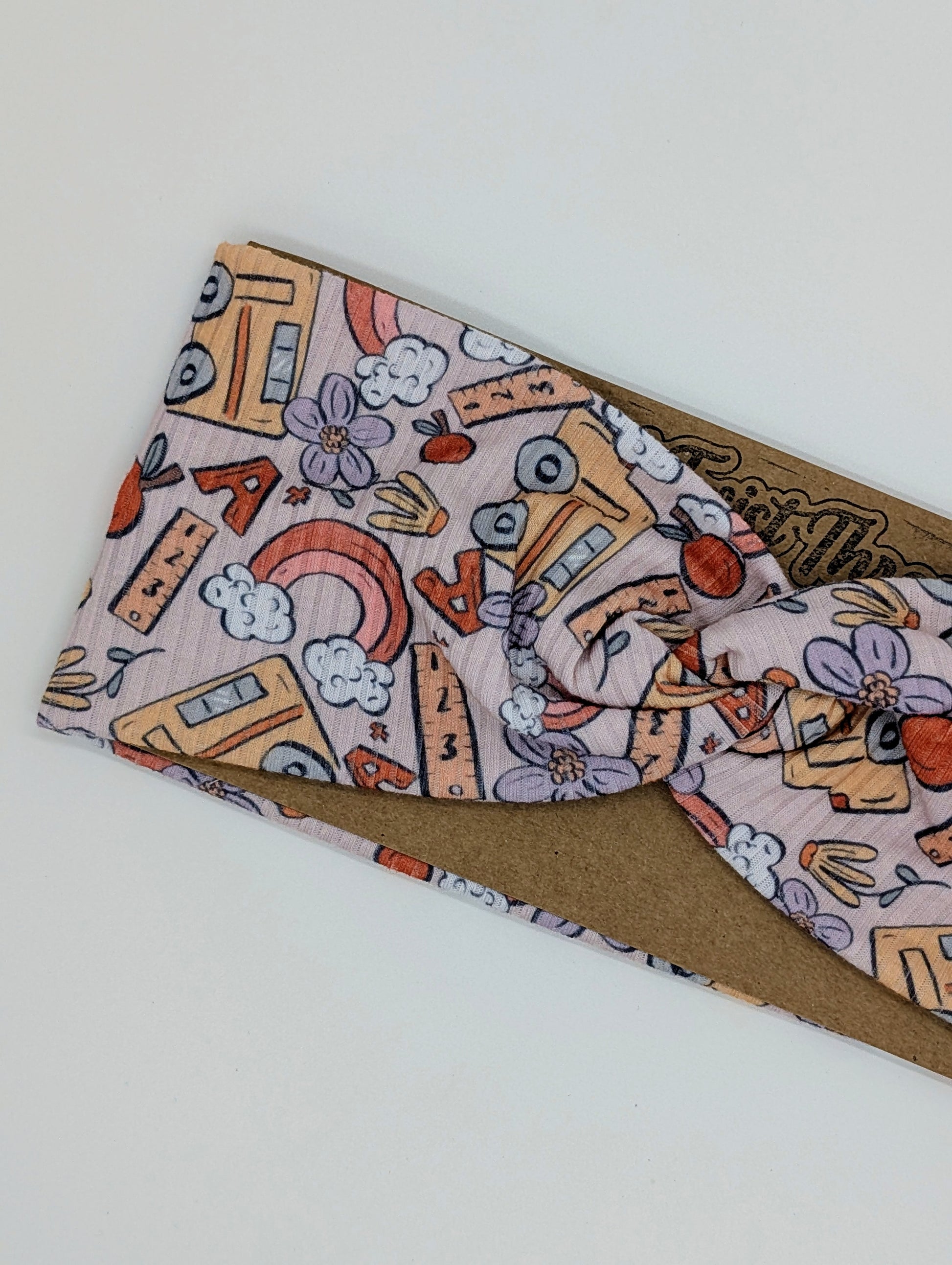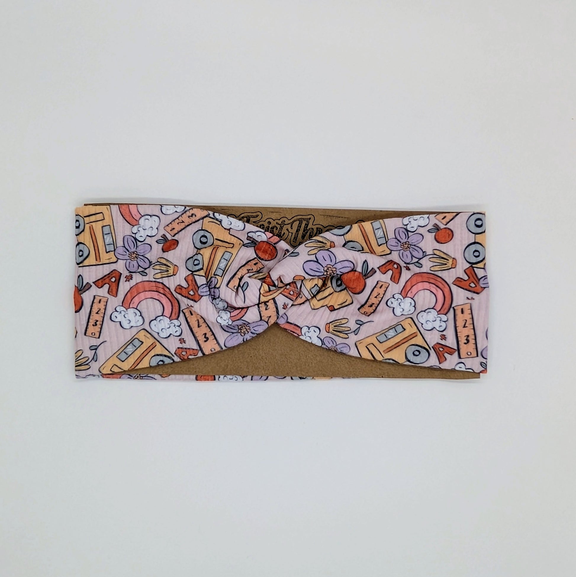 Adult Twist Headband - Rib Knit - School Bus - Back to School