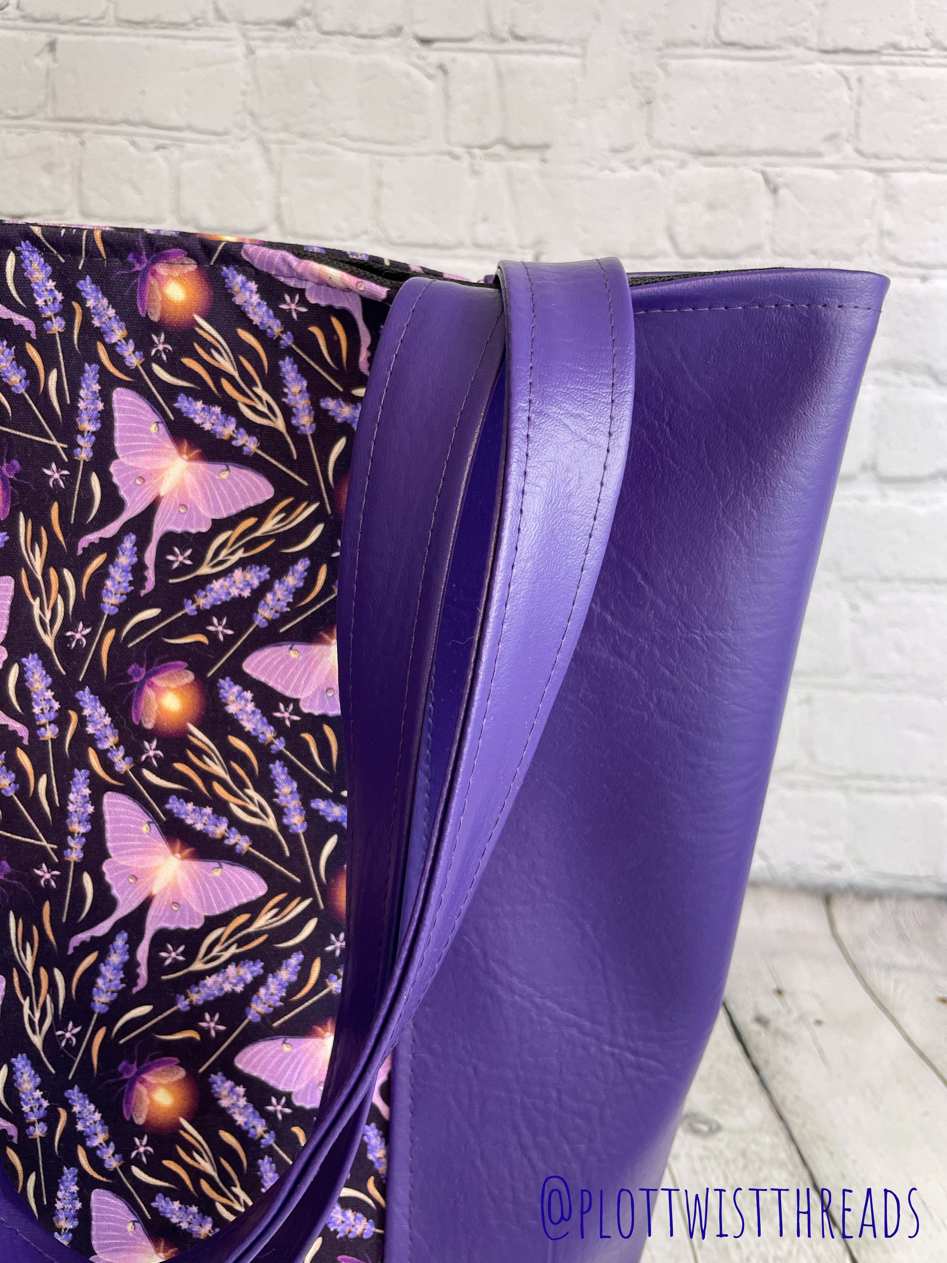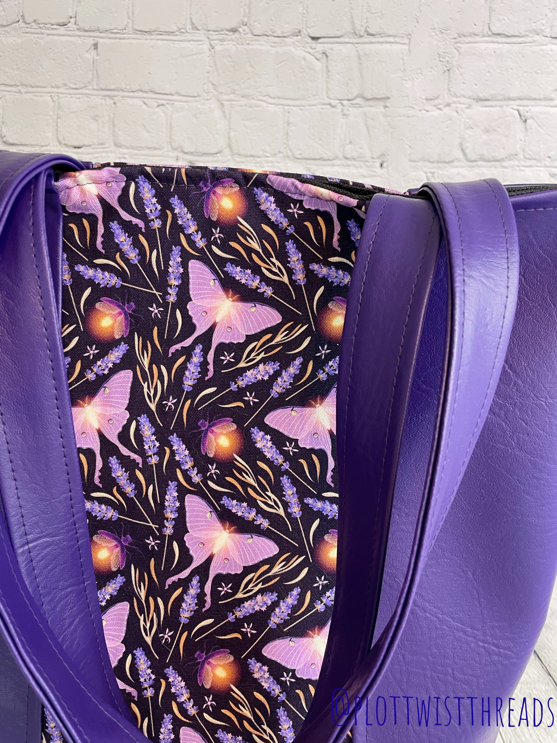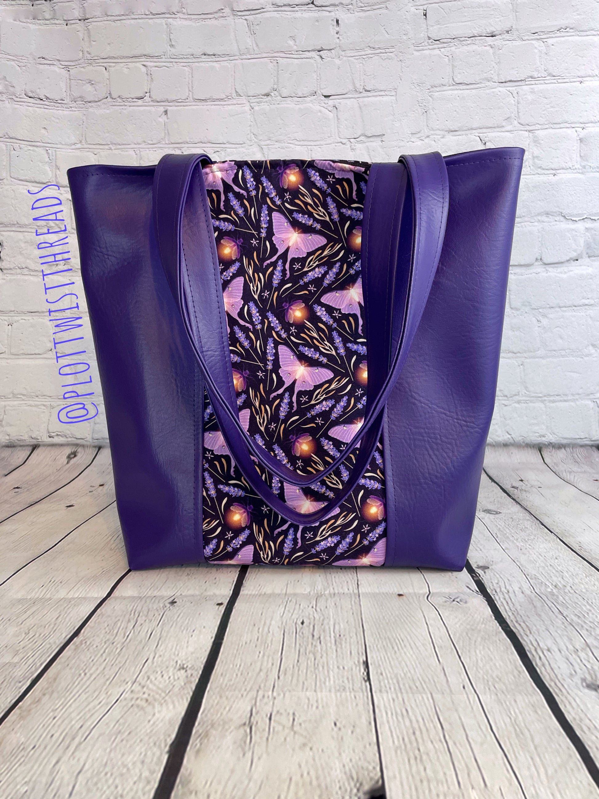 Tote Bag - Purse - Shoulder Bag - Canvas and Vinyl Tote - Purple Luna Moths
