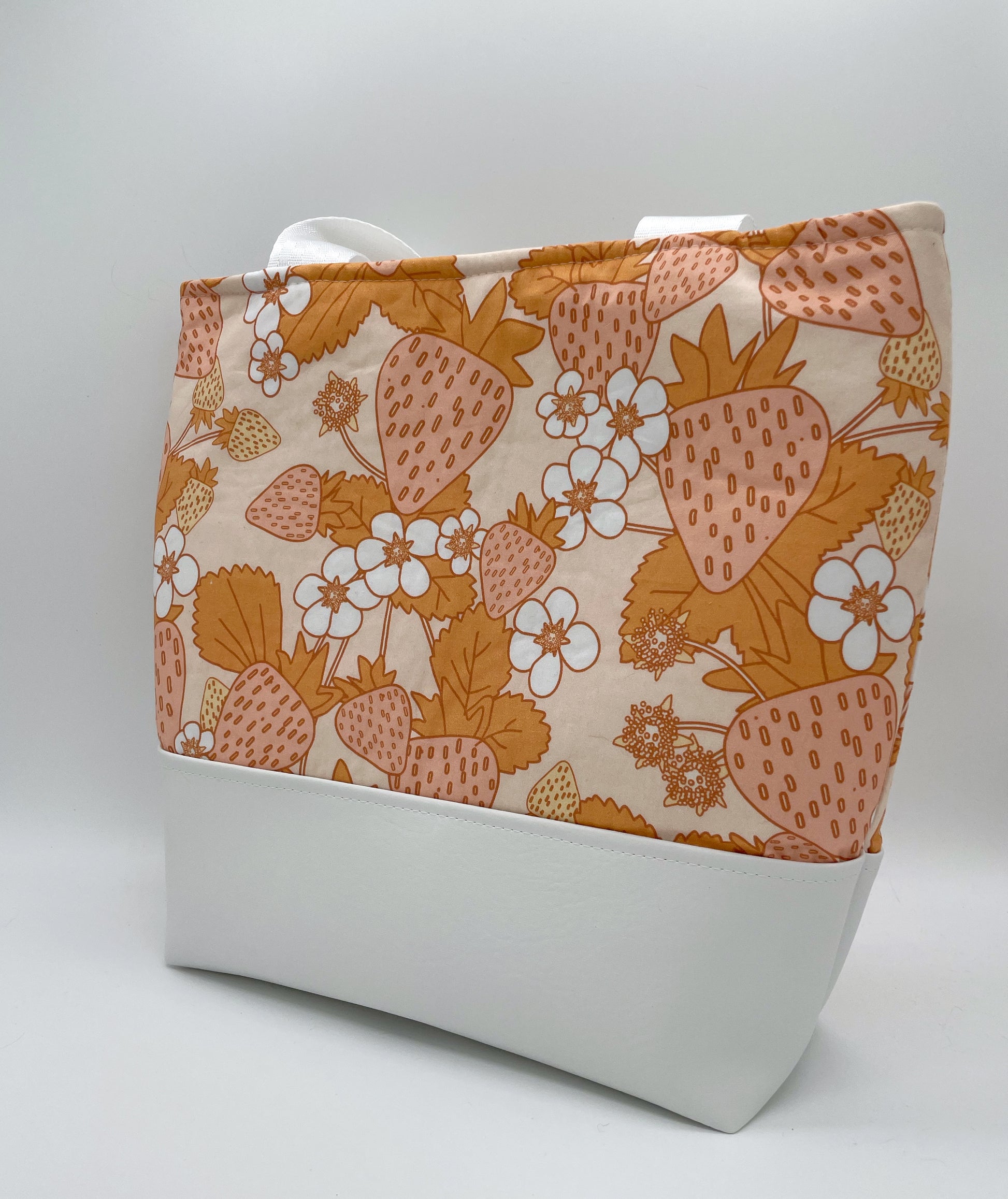 Tote Bag - Purse - Shoulder Bag - Cotton with Vinyl Tote - Strawberries