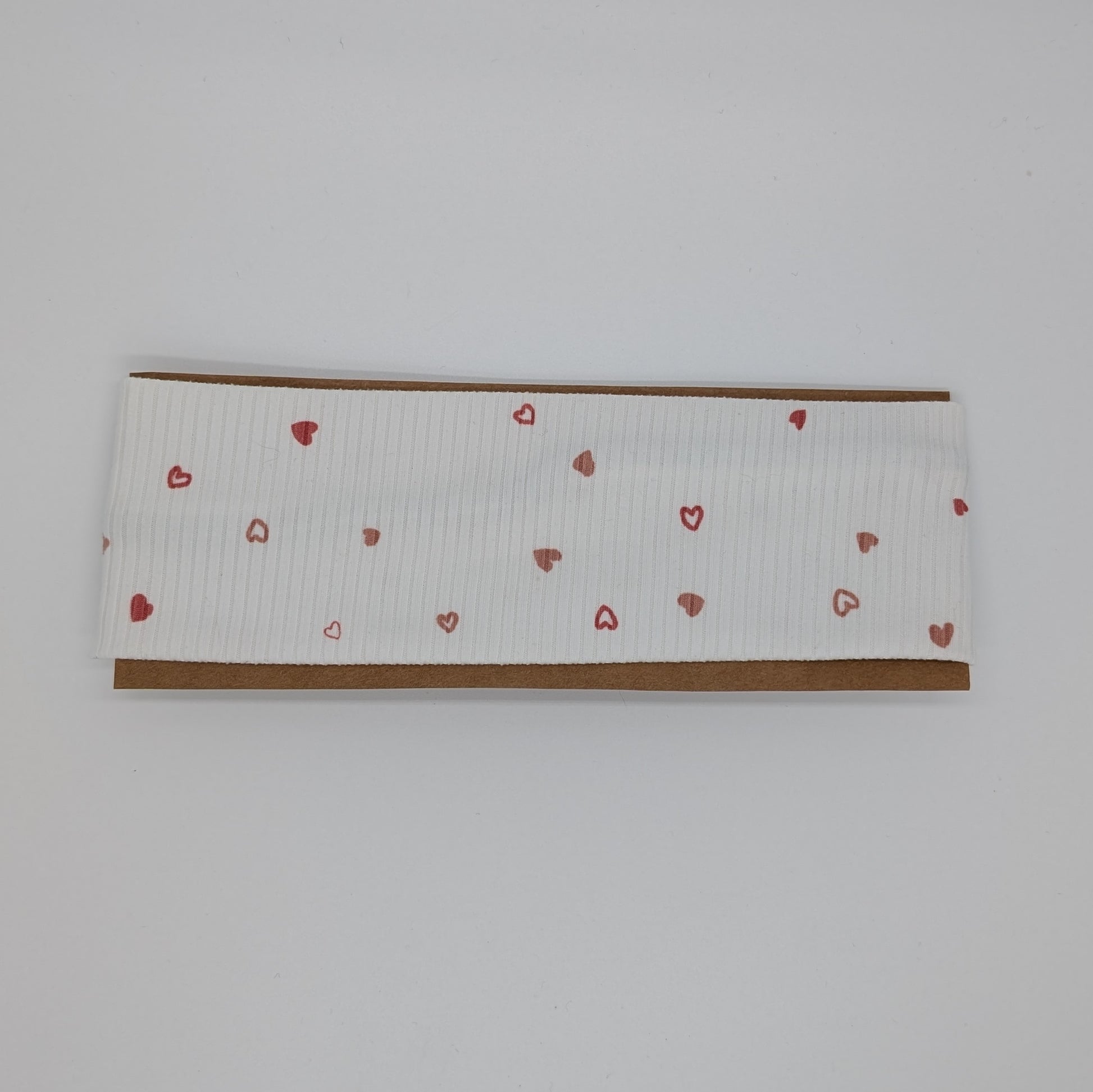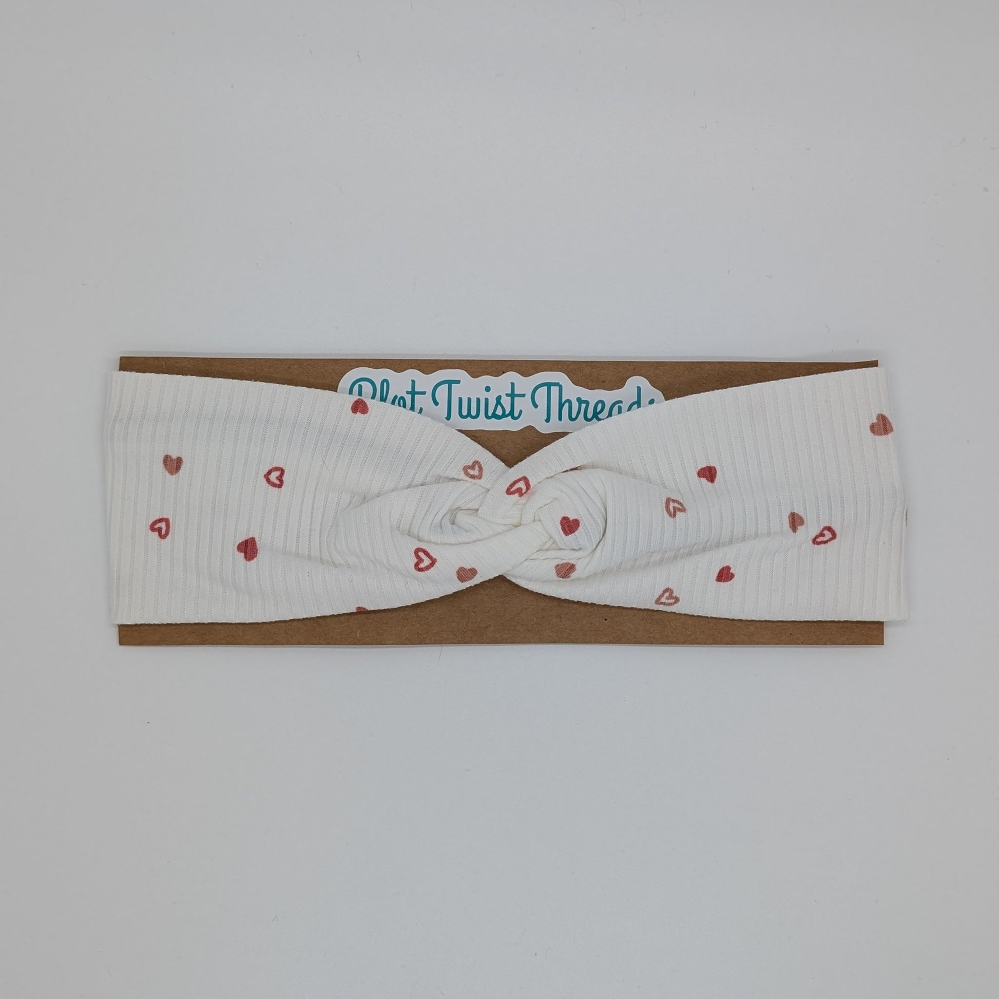 Youth Twist Headband - Rib Knit - White with Tiny Hearts
